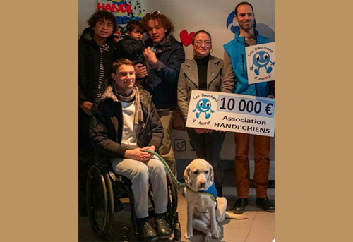 Lors de la cérémonie de remise de chiens d’assistance par la Catalane Handi’chiens le 28 octobre 2023 à Pollestres avec Jean-Louis Auriche et Monique Geninn le Président Guy Marquille a remis un chèque de 10000€ à Françoise Olibo (Présidente de l’association La Catalane Handi’chiens.